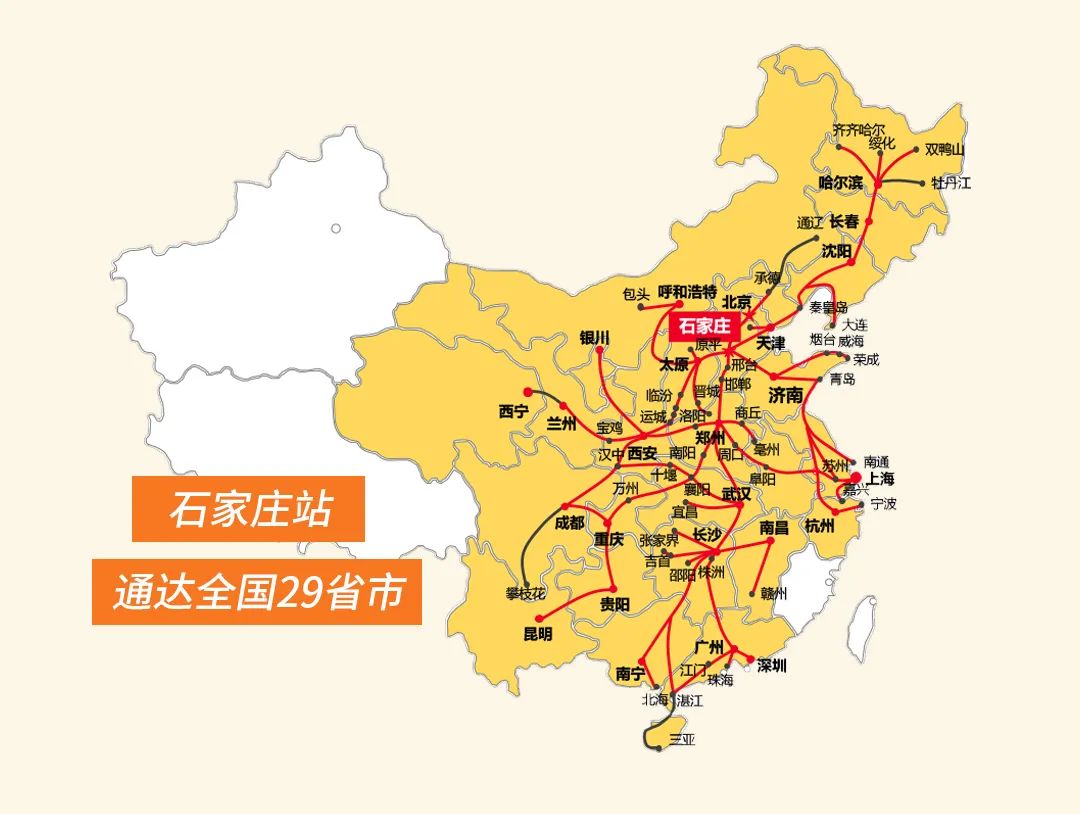 石家(jiā)莊因鐵(tiě)路(lù)而興盛,承載著(zhe)曆史厚度的(de)石家(jiā)莊站(zhàn)見(jiàn)證著(zhe)這(zhè)座城(c≤héng)市(shì)日(rì)新月(yuè)異的(de)發展進程。石家(jiā)莊站(zhàn)被→譽為(wèi)石家(jiā)莊鐵(tiě)路(lù)網的(de)“心髒”,通(tōng)達全國(guó)29個(gè)省市(shì),是(shì)我國(guó)華北(běi)地(dì)區(qū)重要(yào)的(de)綜合性交通(tōng)樞紐,銜接京廣鐵(tiě)路(lù)、京廣高(gāo) 速鐵(tiě)路(lù)、石濟高(gāo)速鐵(tiě)路(lù)、石太高(gāo)速鐵(tiě)路(lù),是(shì)增強城(chéng)市(shì♠)經濟活力的(de)重要(yào)“抓手”。