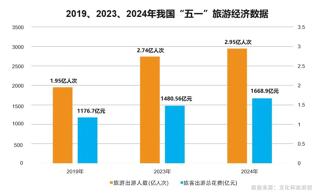 2024年(nián)五一(yī)期間(jiān),國(guó)內(nèi)旅遊出遊合計(jì)2.95億人(rén)次,同比增長(cháng)7.6%;國(guó)內(nèi)遊客出遊總花(huā)費(fèi)1668.9億元,同比增長(cháng)12.7%。國(guó)內(nèi)旅遊業(yè)迎來(lái)全面複蘇。