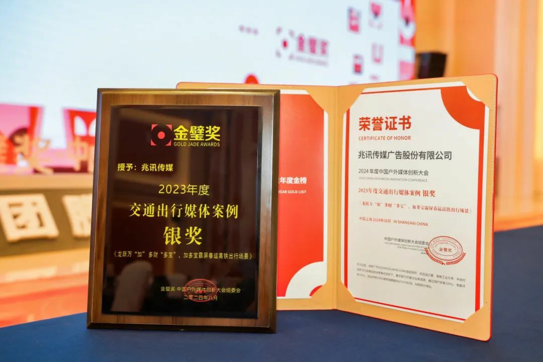 8月(yuè)21日(rì)-23日(rì),第六屆金(jīn)璧獎·2024中國(guó)戶外(wài)媒體(t↓ǐ)創新大(dà)會(huì)在上(shàng)海(hǎi)隆重舉行(xíng),戶外(wài)數(shù)字媒體(tǐ)領軍者兆訊傳媒受邀出席,攜獨立自(zìα)制(zhì)作(zuò)品“‘貓貓蟲’萌翻龍年(nián)新春裸眼3D案例”榮獲2023年(nián)度公共場(chǎng)景媒體(tǐ)金(jīn)獎、攜手品牌夥伴加多(duō)寶“龍≤躍萬‘加’ 多(duō)财‘多(duō)寶’高(gāo)鐵(tiě)場(chǎng)景營銷案例”榮獲2023年(nián)度交通(tōng)出行(xíng)媒體(tǐ)銀(yín)獎!