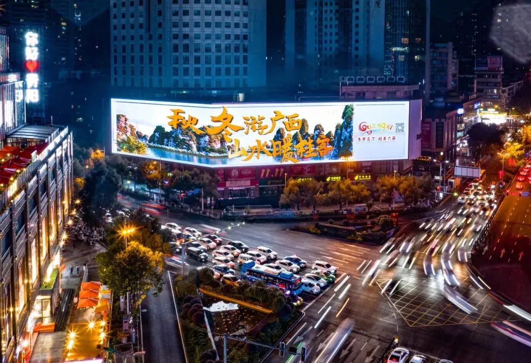 數(shù)字驅動 智領時(shí)代 在數(shù)字化(huà)的(de)驅動下(xià),戶外(wài)廣告已不(bù)再局限于傳統的(de)平面展示。通(tōng)過核心商圈大(dà)屏的(de)多(duō)元呈現(xiàn),高(gāo)清流暢的(de)屏幕質量和(hé)前沿數(shù)字內(nèi)容制(zhì)作(zuò),為(wèi)城(chéng)市(shì)人(rén)©文(wén)、商業(yè)藝術(shù)表達提供了(le)更廣闊的(de)展示和(hé)想象空(kōng)間(jiān)。 商圈LED大(dà)屏作(zuò)為(wèi)現(xiàn)代城(chéng)市(shì)的(de)新地(dì)标,不(bù)斷推動“文(wén)旅+夜經濟+科(kē)技&(jì)”創新融合,構建具備鮮明(míng)地(dì)域特色的(de)城(chéng)市(shì)新舞(wǔ)台,也(yě)₹為(wèi)大(dà)衆帶來(lái)了(le)更加沉浸的(de)出行(xíng)體(tǐ)驗。 在都(dōu)市(shì)的(de)璀璨霓虹下(xià),廣西(xī)文(wén)旅宣傳廣告登陸兆訊戶✔外(wài)商圈大(dà)屏,演繹了(le)一(yī)場(chǎng)精彩紛呈的(de)視(shì)覺盛宴。從(cóng)氣勢磅礴的(de)崇左德天大(dà)瀑布,到(dào)甯靜δ(jìng)浪漫的(de)欽州三娘灣,嬉戲跳(tiào)躍的(de)中華白(bái)海(hǎi)豚帶我們走進美(měi)不(bù)勝收的(de)自(zì)然風(fēng)光(guān♥g). 壯美(měi)邊關、詩意山(shān)水(shuǐ)、浪漫濱海(hǎi)、多(duō)彩民(mín)族,$“桂林(lín)山(shān)水(shuǐ)甲天下(xià)”在此刻被具象化(huà),廣西(xī)文(wén)旅通(tōng)過全方位立體(tǐ)化(huà)宣傳推廣矩陣,進一(y≤ī)步打響“秀甲天下(xià) 壯美(měi)廣西(xī)”文(wén)旅品牌。