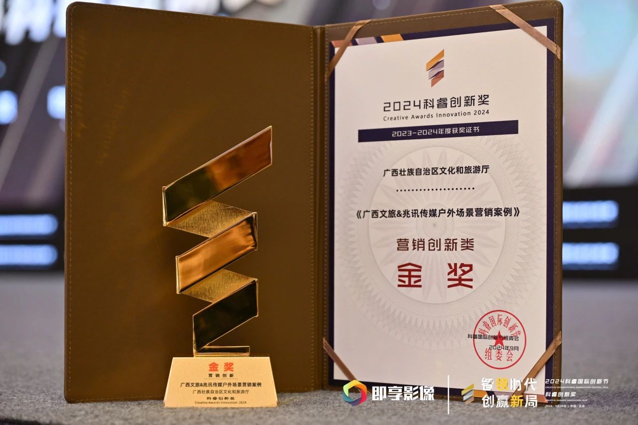 兆訊傳媒憑借強大(dà)的(de)戶外(wài)數(shù)字媒體(tǐ)資源以及專業(yè)的(de)品牌傳播能(néng)力,攜“廣西(xī)文(wén≈)旅戶外(wài)場(chǎng)景營銷案例”再度斬獲科(kē)睿營銷創新類金(jīn)獎。
