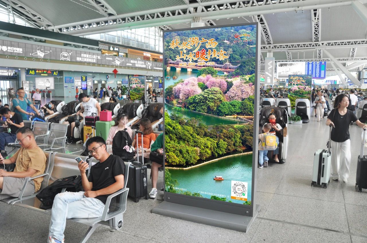 通(tōng)過攜手兆訊傳媒,登陸中國(guó)高(gāo)鐵(tiě)車(chē)站(zhàn),鎖定城(ché®ng)市(shì)核心商圈,廣西(xī)文(wén)旅生(shēng)動展現(xiàn)了(le)當地(dì)秋冬文(w♥én)旅資源,加深了(le)公衆對(duì)廣西(xī)文(wén)化(huà)和(hé)旅遊魅力的(de)認識和(hé)感受,一(yī)幅幅↔秀甲天下(xià)的(de)壯美(měi)山(shān)水(shuǐ)畫(huà)卷,在高(gāo)鐵♣(tiě)出行(xíng)場(chǎng)景中徐徐展開(kāi),吸引八方來(lái)客踏上(shàng)一(yī)段多(βduō)彩的(de)文(wén)化(huà)旅程。