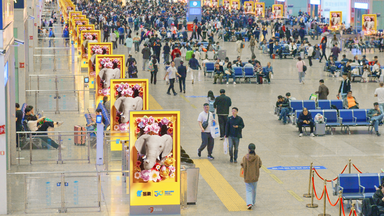 高(gāo)鐵(tiě)賦能(néng),與象同行(xíng)。據中國(guó)鐵(tiě)路(lù)消息,今年(nián)五一(yī)小(xiǎo)長(cháng)假期間(jiānε),全國(guó)鐵(tiě)路(lù)累計(jì)發送旅客1.51億人(rén)次、同比增長(cháng)10.6%,其中5月(yuè)1日(rì)發送旅客2311.9萬人(rén)次,創單日(rì)旅客發送量曆史新高(gāo)。影(yǐng)片所覆蓋的(de)34個(gè)高(gāo)鐵(tiě)車(chē)站(zhàn)中,北(běi)京、上(shàng)海(hǎi)、廣州等多(duō)個(gè)城(chéng)市(shì)同時(shí)跻身(s←hēn)五一(yī)熱(rè)門(mén)目的(de)地(dì)前十,強勢擴大(dà)聖象傳播攻勢,品牌曝光(guāng)效能(néng≠)得(de)到(dào)顯著提升。