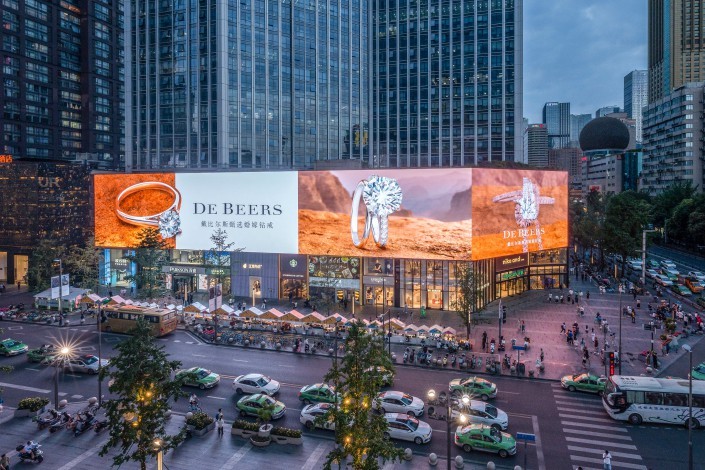 兆訊傳媒重慶觀音(yīn)橋1836平方茂業(yè)天地(dì)城(chéng)市(shì)LED 豎屏巨幕 震撼來(lái)襲